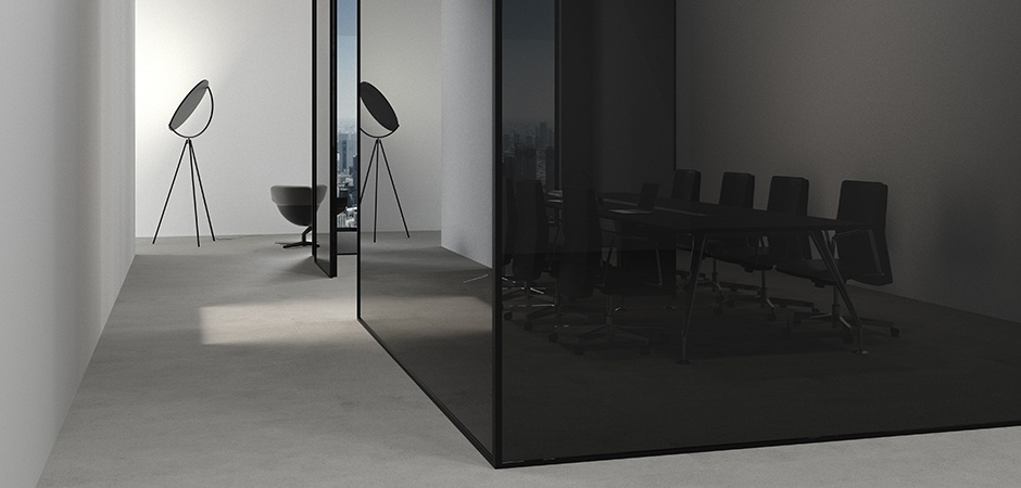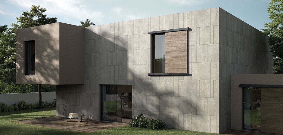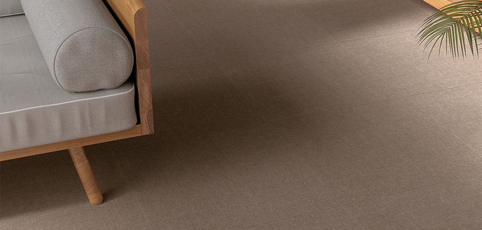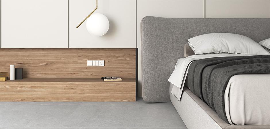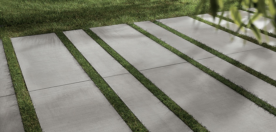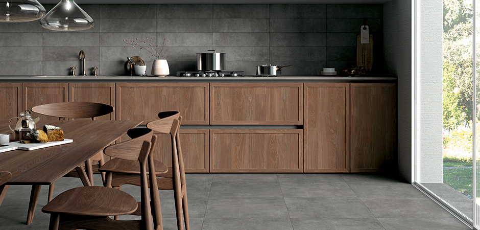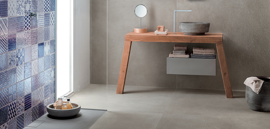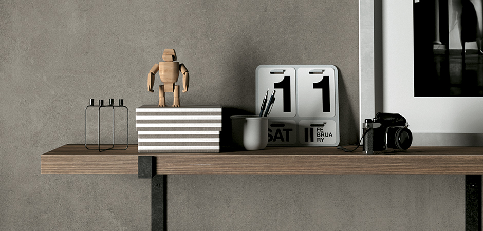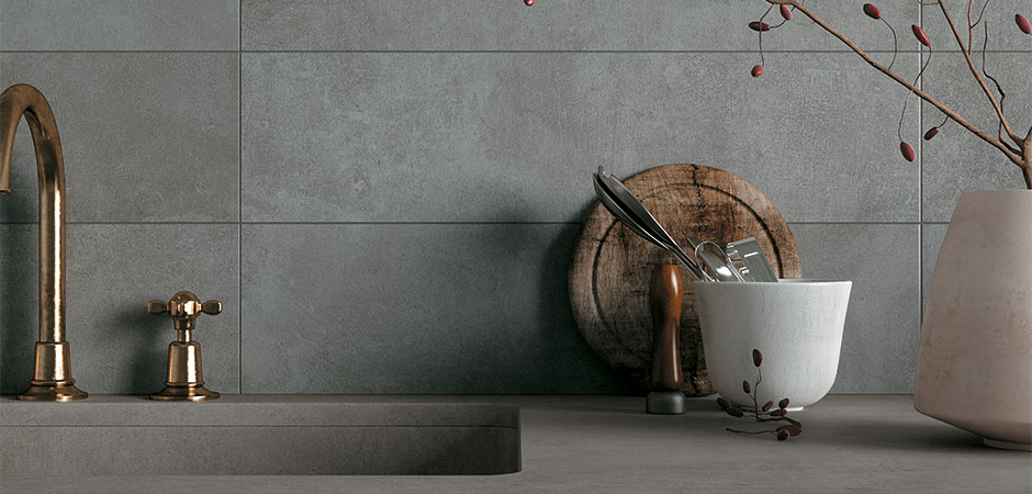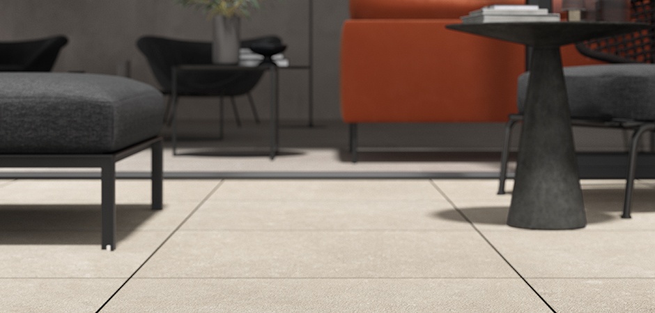 CONCRETE présente toute la richesse du ciment poli, avec les caractéristiques techniques et le haut rendement du grès cérame pleine masse.