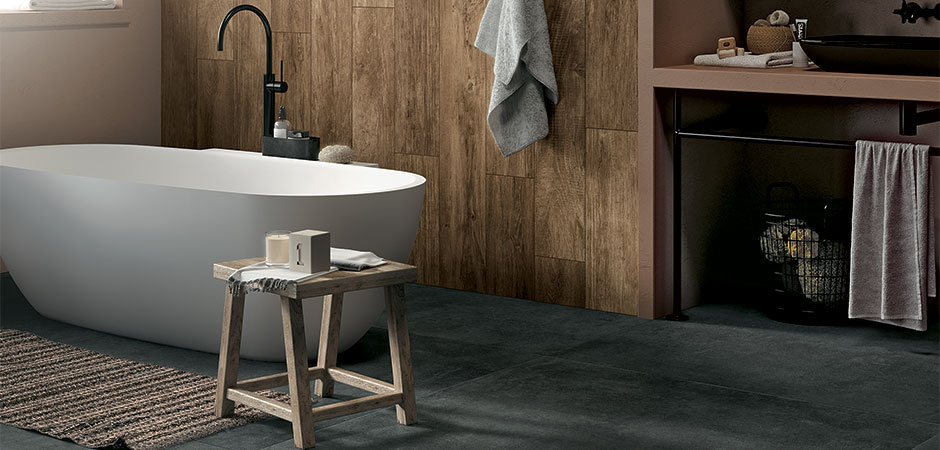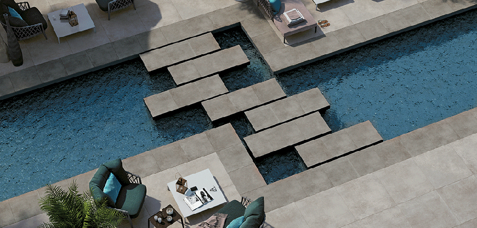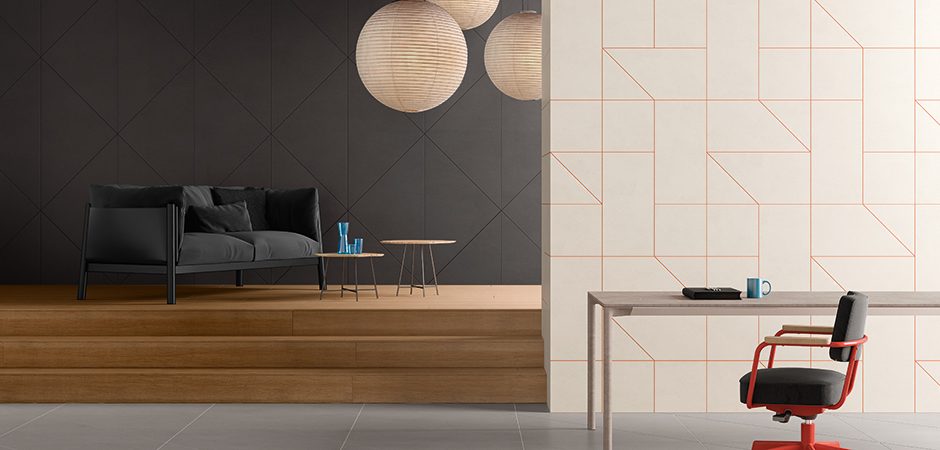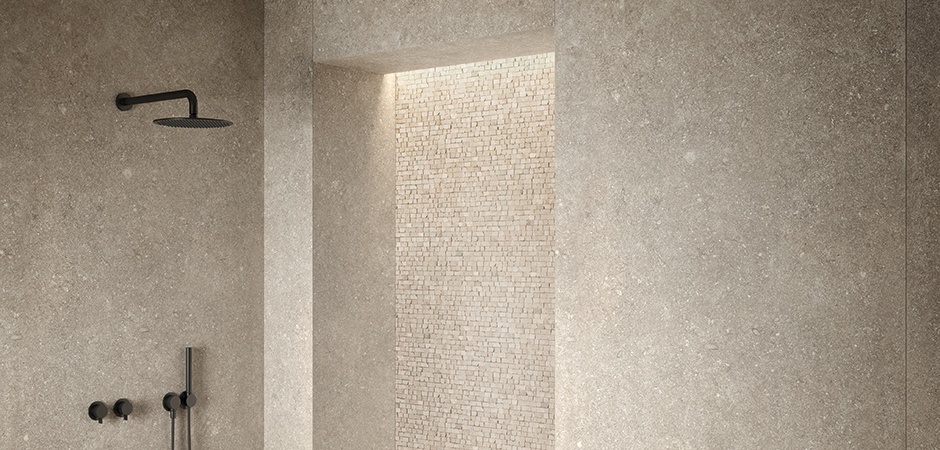 Le point de départ ? La pierre PIETRE41est une série de carreaux de porcelaine colorée avec une impression numérique qui crée un aspect réaliste de la pierre.