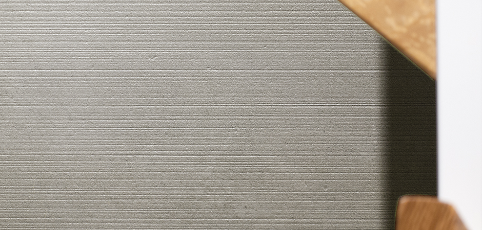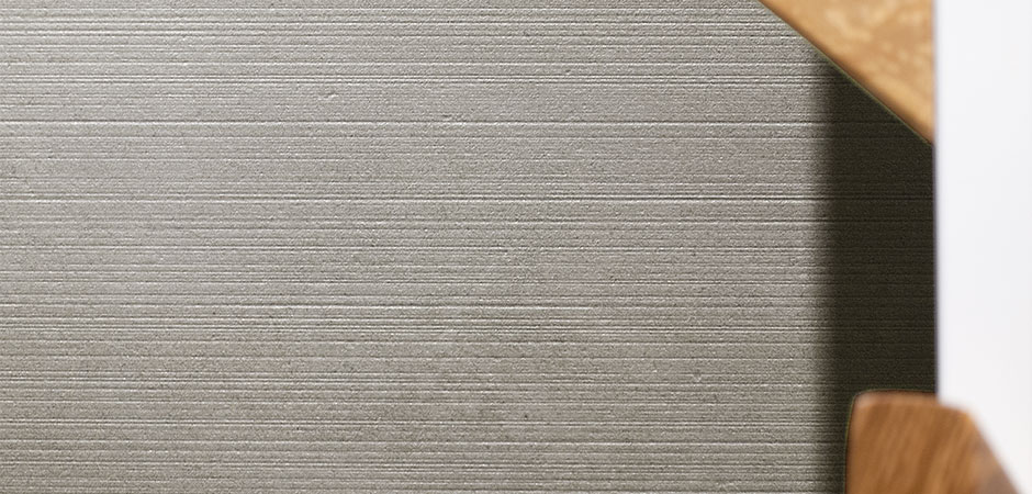 Avec une subtile combinaison de fossiles clair-obscures et de veines, CONTRAST présente une surface soigneusement rayée manuellement.