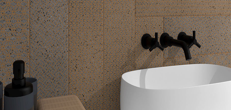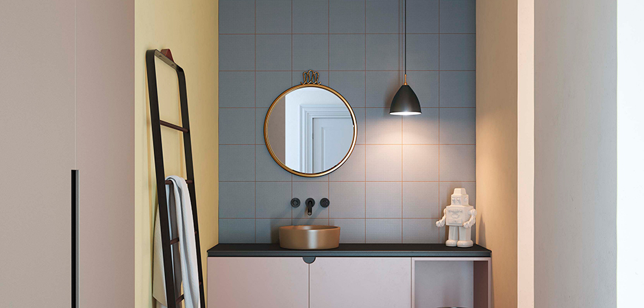 Subtil équilibre entre coloré et épuré, apprenez à savourer la rencontre étonnante d’un carrelage grès cérame ancré dans la sobriété de la roche volcanique et de son âme-sœur pétillante de couleurs.