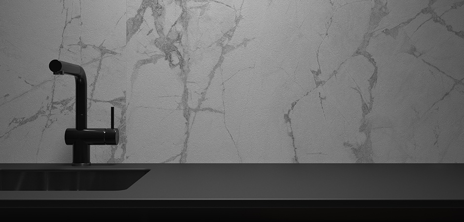 La collection de marbre VENE représente la pureté grâce à ses tonalités claires, mat et structurées. L’Arabescato reproduit la subtilité du marbre grâce aux formes de ses veines, où apparaît le jeu entremêlé des contrastes entre blanc et foncé. Le marbre Invisible représente la force de la pierre, transmettant une sensation puissante et définissant une relation équilibrée entre ses différentes nuances. Le marbre Calacatta est l’une des pièces les plus représentatives de la pureté dans cette collection, où l’éclat du blanc et la force du noir se disputent le devant de la scène.