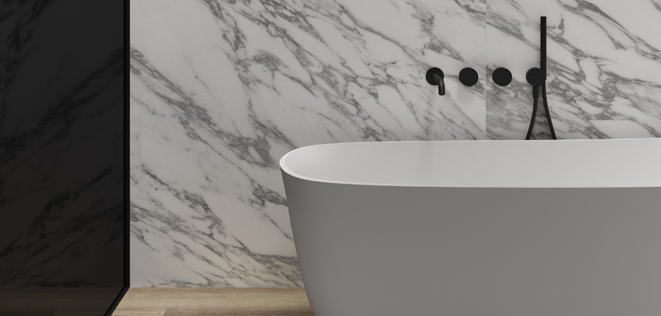 La collection de marbre VENE représente la pureté grâce à ses tonalités claires, mat et structurées. L’Arabescato reproduit la subtilité du marbre grâce aux formes de ses veines, où apparaît le jeu entremêlé des contrastes entre blanc et foncé.