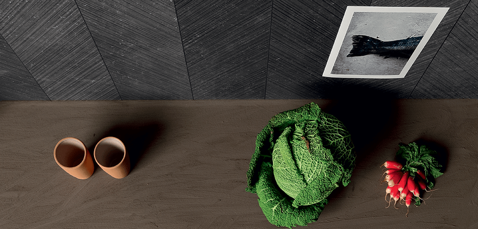 L’essence de la collection MATERICA représente un mélange de ciment poli fixé avec le temps.