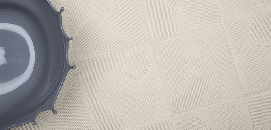 Contrairement à la plupart des collections de carrelage, CUT trouve sa force dans les motifs graphiques qui la compose et non pas dans les décorations qui la façonne.